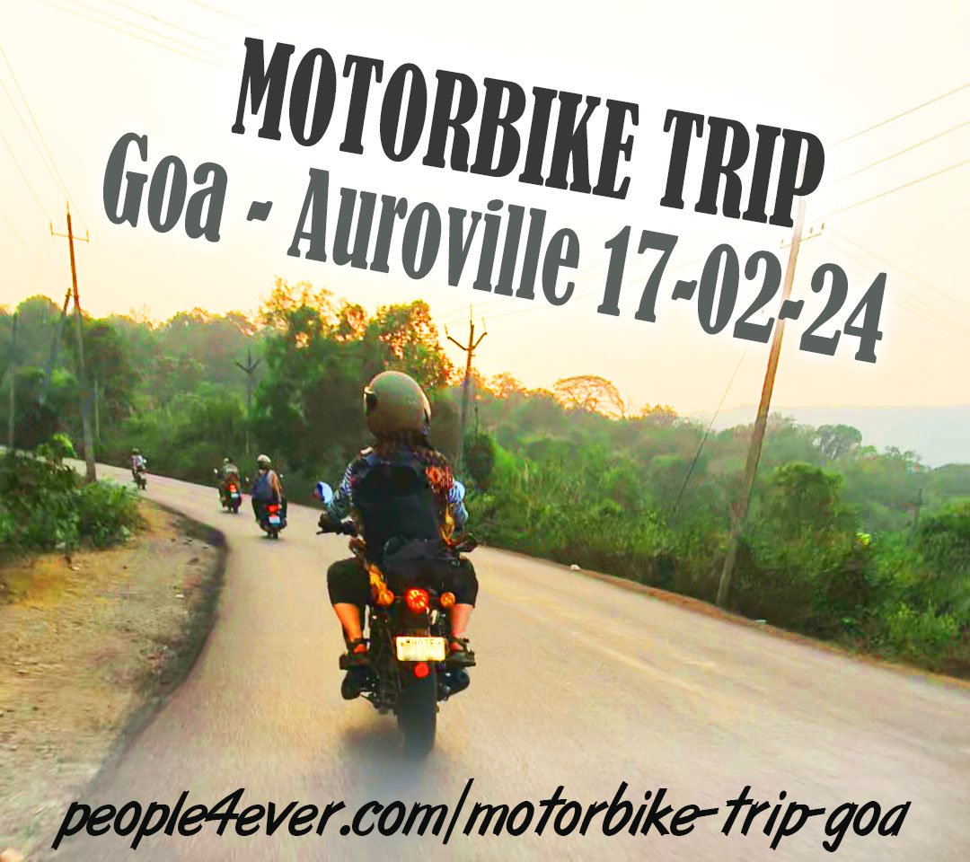 - The big MotorBike tripย Goa <-> Auroville leaves Goa on February 17 this coming Saturday โจWe are Excited to share with you about going for a 15 days Motorbike trip - Coast-to-Cost East to West Indiaย โจ >- Each direction will take about 4-5 days as we cross one of the most beautiful green regions in India. We stay and explore the east coast for a few days and back in Goa [Read more...]